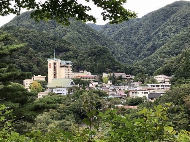 ここから歩くこと15分ほどで川治の温泉街が見えてきます。